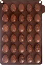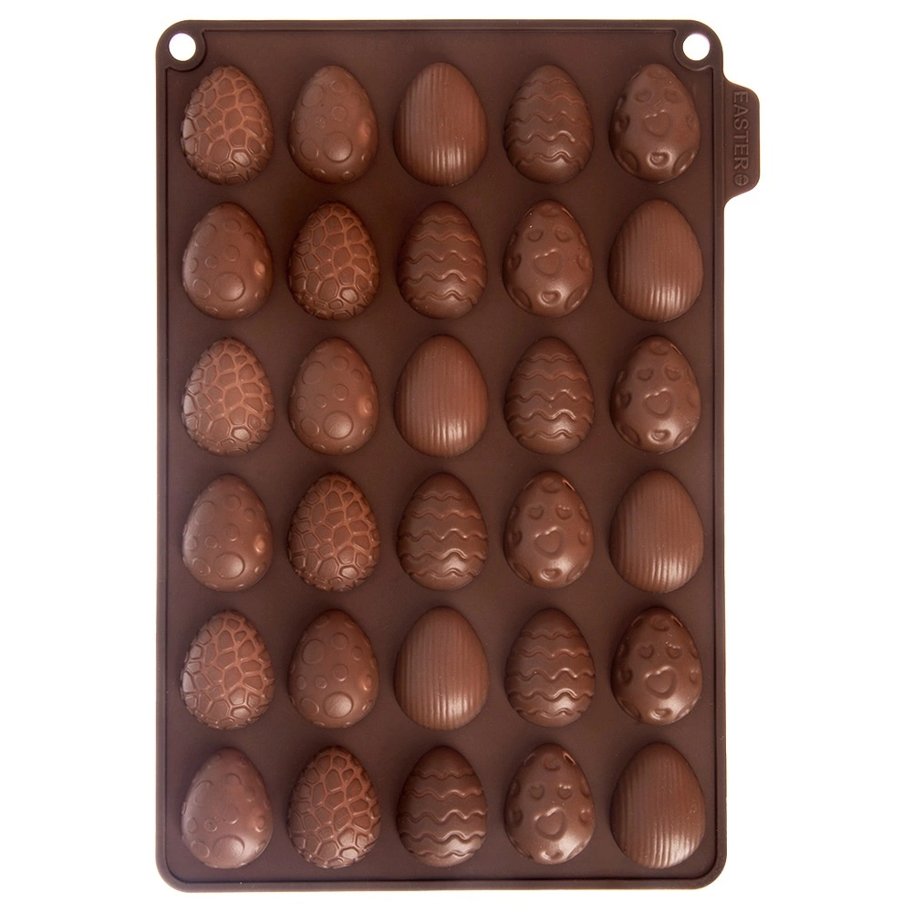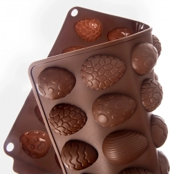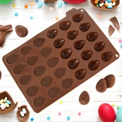 Ta kakovosten silikonski model v rjavi barvi omogoča preprosto pripravo domačih pralin, čokoladic in drobnega peciva v obliki jajčk. Zahvaljujoč neprijemljivi površini se končni izdelki zlahka iztisnejo brez potrebe po maščenju ali pomokanju. Model je lahek, kompakten in ne prevzema vonjav ali okusov.