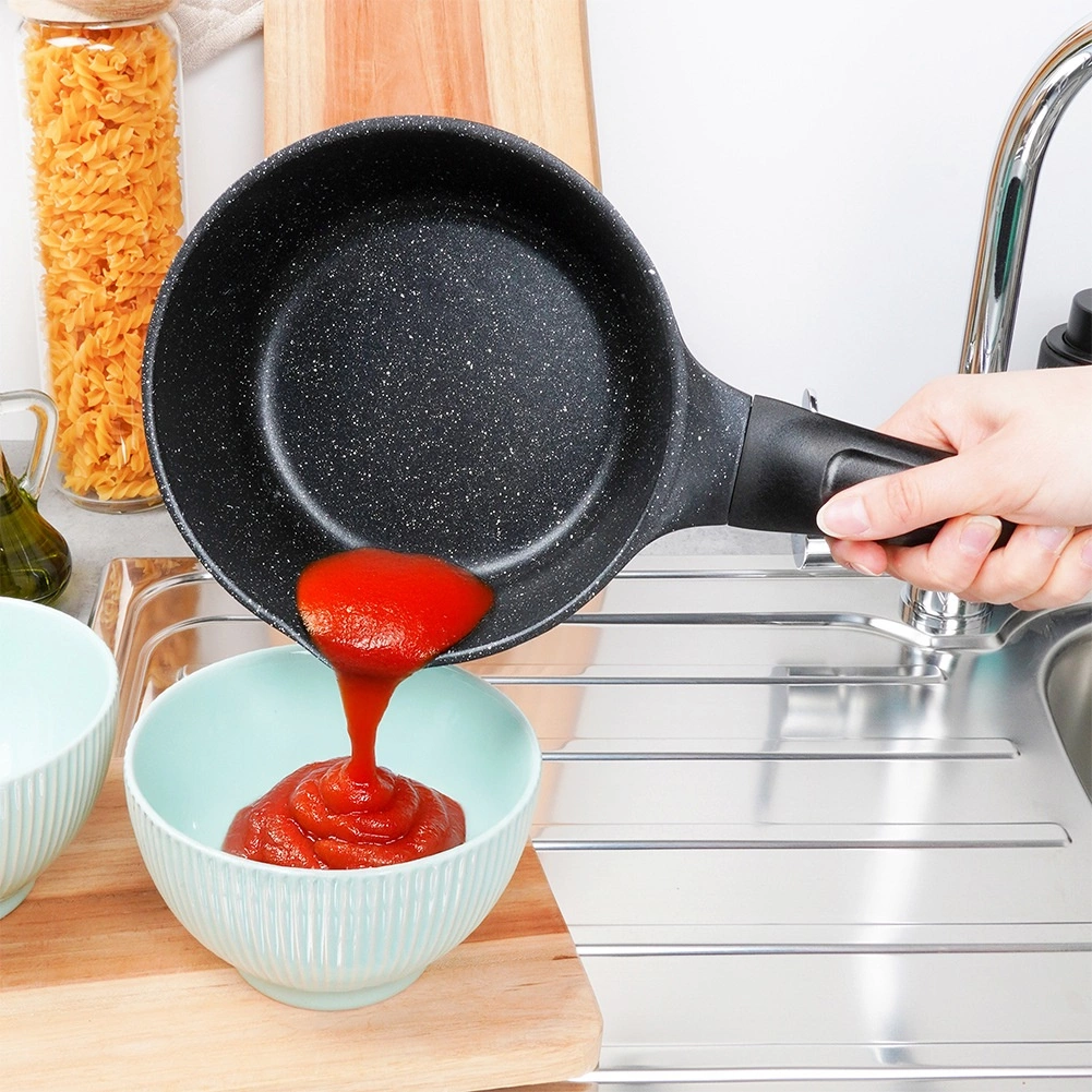 Kozica iz trpežnega aluminija z granitno nelepljivo prevleko PFLUON GRANIT je odlična izbira za pripravo omak, juh, kaš ali za hitro pogrevanje mleka. Površina je odporna proti praskam, brez PFOA in PTFE, ter ohranja enakomerno temperaturo po celotni površini. Zahvaljujoč izlivnemu kljunu tekočine prelijete zlahka in čisto.