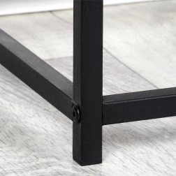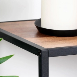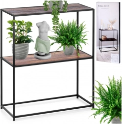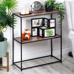 Ta dvonadstropna polica z merami 70 × 30,5 × 85 cm je idealna za pregledno shranjevanje in stilsko razstavljanje dekoracij, knjig, rastlin ter kopalniških in kuhinjskih dodatkov. Robustno kovinsko ogrodje v črni barvi v kombinaciji s policami iz MDF v videzu lesa ustvarja sodoben industrijski videz, ki se poda večini interierjev.