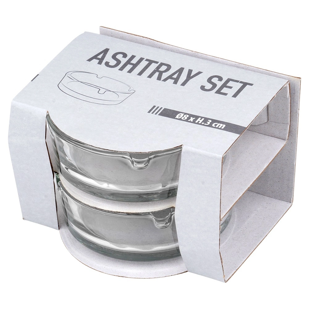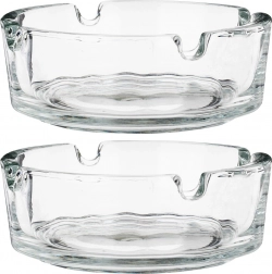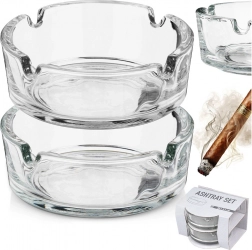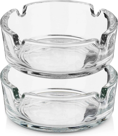 Komplet 2 okroglih steklenih pepelnikov združuje brezčasen videz in visoko funkcionalnost. Prozorno, debelo steklo zagotavlja stabilnost ter odpornost na toploto in vsakodnevno uporabo. Zaradi univerzalnega sloga se odlično podajo v vsak interier in zunanje sedenje.