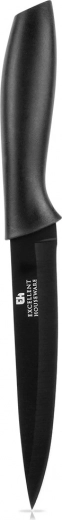 Odkrijte zanesljiv kuhinjski nož, ki obvlada natančno rezanje, sekljanje zelišč in pripravo mesa. Rezilo iz nerjavnega jekla z mat črno površino zagotavlja gladek rez in odpornost proti koroziji. Ergonomski ročaj poskrbi za udoben in zanesljiv oprijem tudi pri daljšem delu v kuhinji.