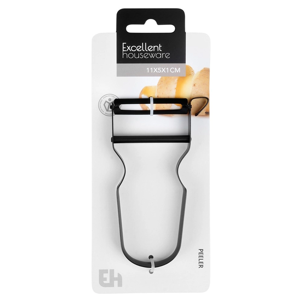 Praktičen Y-lupilec z merami 11,5 × 5,3 × 1 cm in dolžino rezila 5 cm zlahka opravi z lupinami krompirja, korenja, jabolk ali kumar. Ohišje iz nerjavnega jekla z obstojnim prašnim premazom v mat črni barvi zagotavlja dolgo življenjsko dobo in sodoben videz.