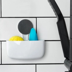 Ta univerzalna polica za prho z velikim priseskom nudi takojšnje in varno shranjevanje kozmetike ter dodatkov brez potrebe po vrtanju. Zaradi kompaktnih mer 16 × 7 × 17 cm se prilega vsaki kopalnici, njen beli, enostavno čistljiv plastični material pa se lepo ujema s sodobnimi in klasičnimi interierji.