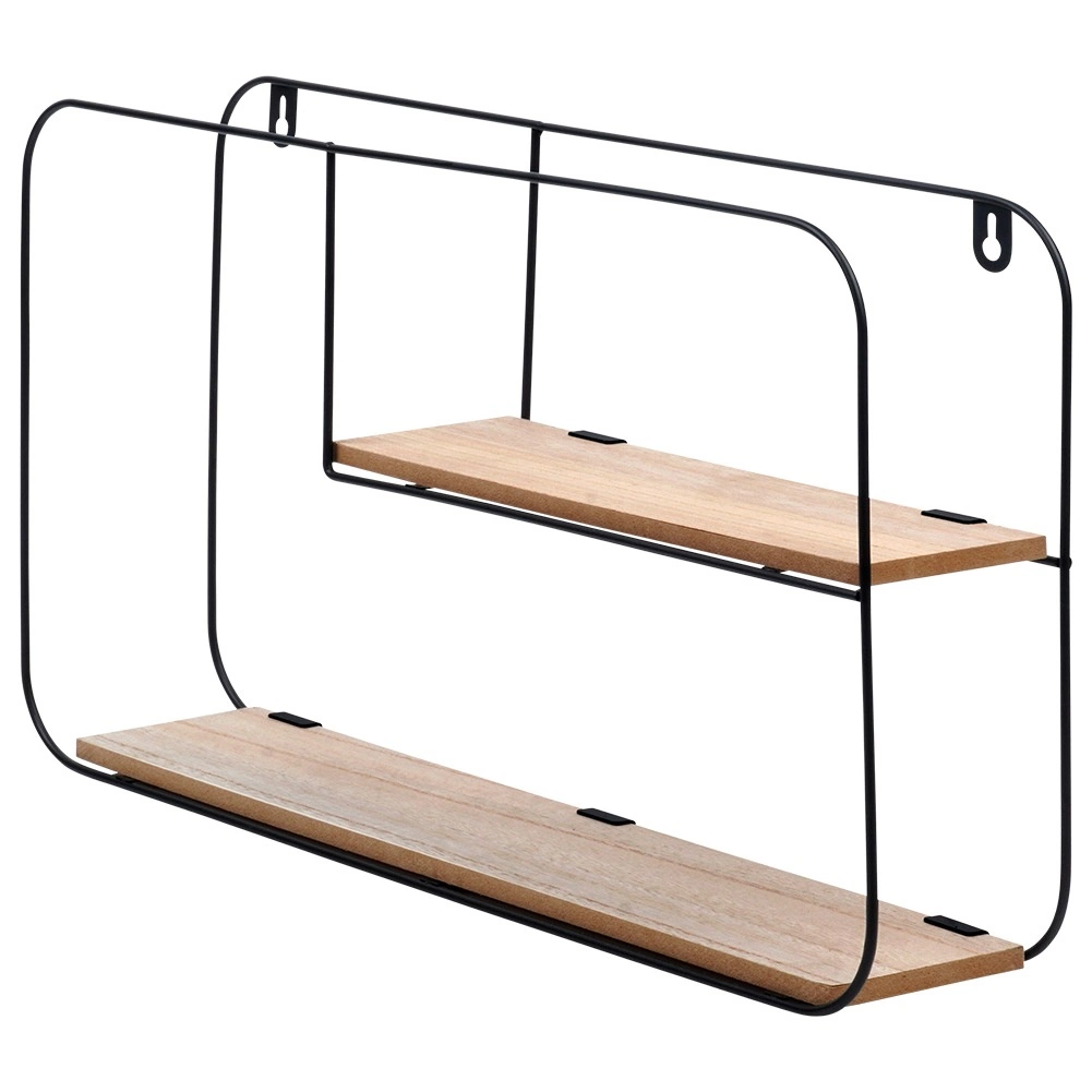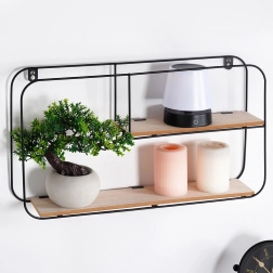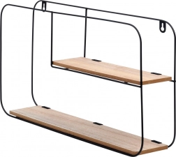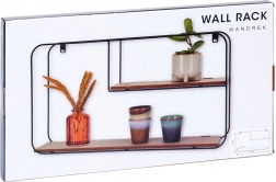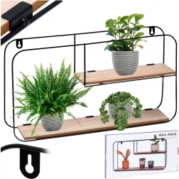 Ta stenska polica izstopa z minimalističnim, industrijskim videzom in kompaktnimi merami, ki se podajo tako manjšim kot večjim interierjem. Dve ravni zagotavljata praktičen prostor za razstavljanje dekoracij, spominkov, sveč ali manjših lončnic. Črn kovinski okvir in naraven ton MDF polic ustvarjata sodoben kontrast, ki se lepo poda industrijskemu, modernemu in skandinavskemu slogu.