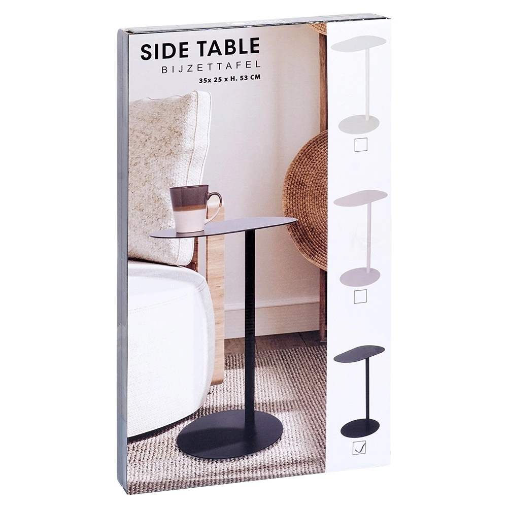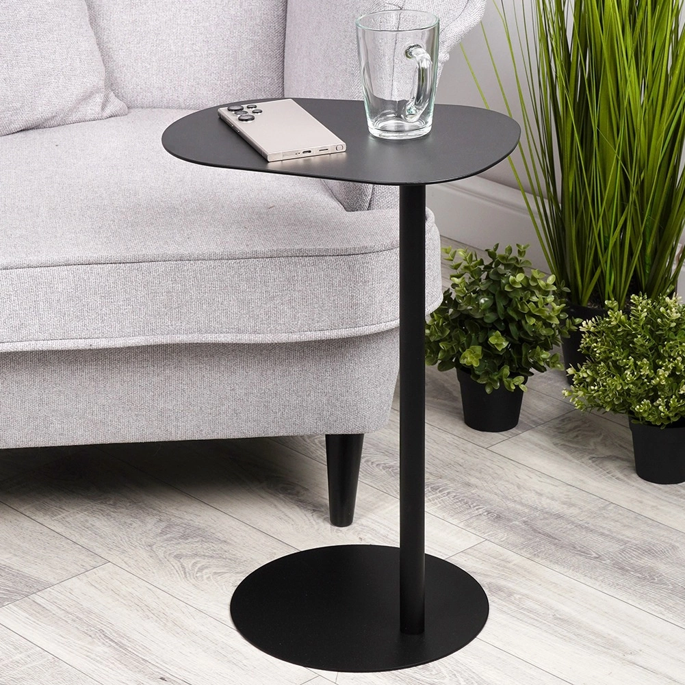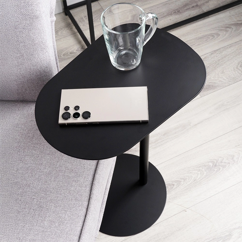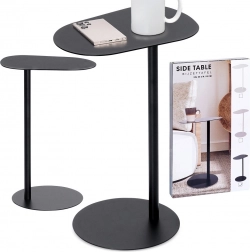 Minimalistična stranska mizica je idealna kot odlagalni prostor za kavo, telefon, daljince ali prenosnik. Celokovinska konstrukcija z mat črno površinsko obdelavo deluje elegantno in se zlahka kombinira z modernim ali klasičnim slogom. Zahvaljujoč vitkemu steblu in okroglemu podstavku s premerom 27 cm ostaja stabilna, ne da bi zavzela veliko prostora.