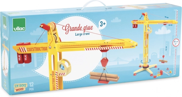 Odkrijte velik lesen žerjav VILAC, ki vsak otroški sobi pričara živahno gradbišče. Ponuja polno rotacijo, dvigovanje in pomikanje tovora z dvema ročicama, stabilno široko osnovo ter bogat nabor dodatkov, vključno z magnetom, figuricami in tovori. Robustna kombinacija masivnega lesa in vezane plošče z neškodljivimi barvami zagotavlja dolgo življenjsko dobo in varno igro.