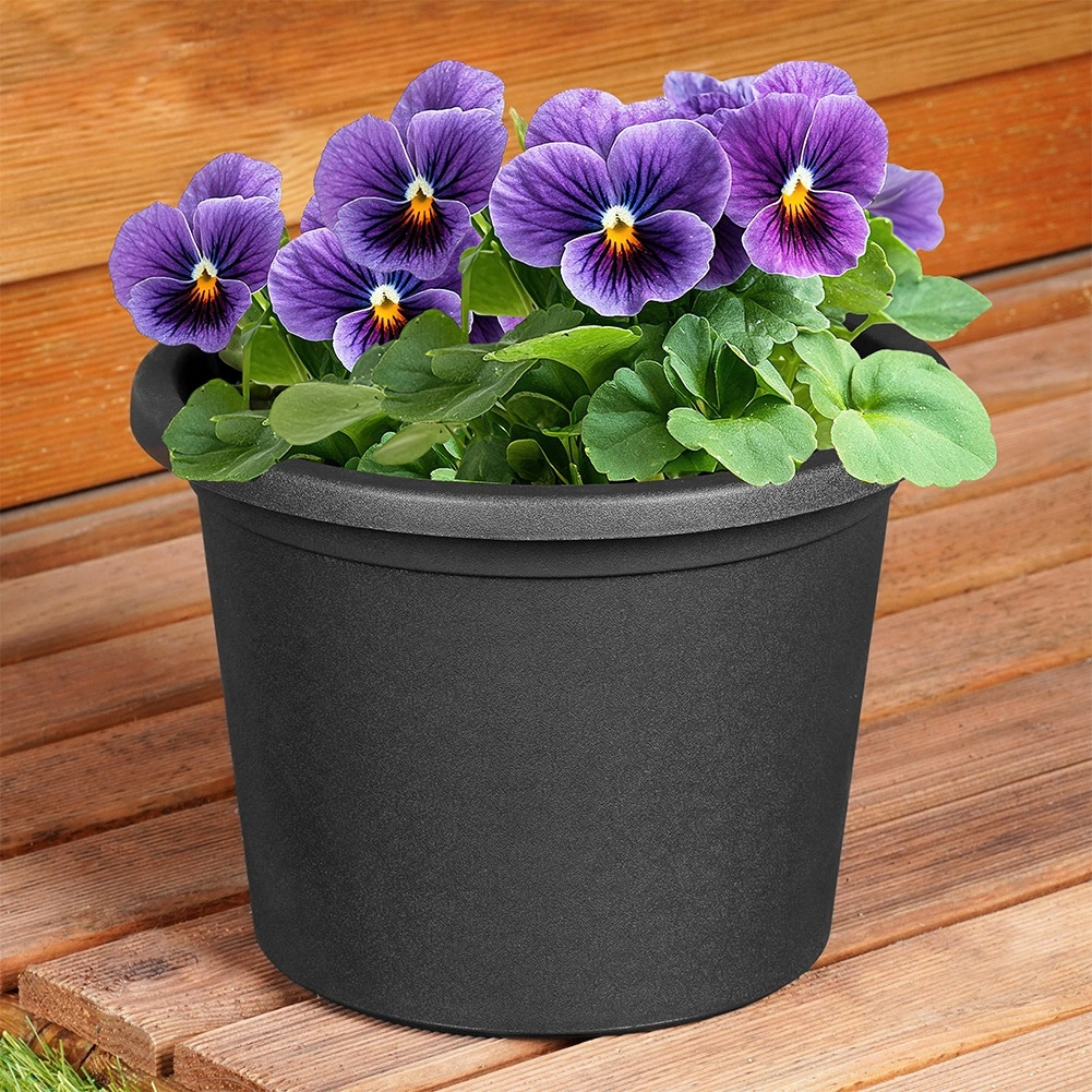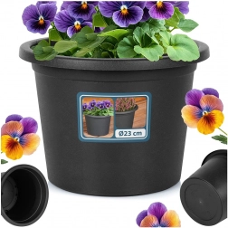 Črn okrogel lonček za rože s premerom 23 cm in višino 16,5 cm je odlična izbira za gojenje rastlin ali kot dekorativni ovoj. Zaradi odpornosti na vremenske vplive ga lahko brez skrbi uporabljate na prostem vse leto – ne motijo ga dež, veter niti sončno sevanje.