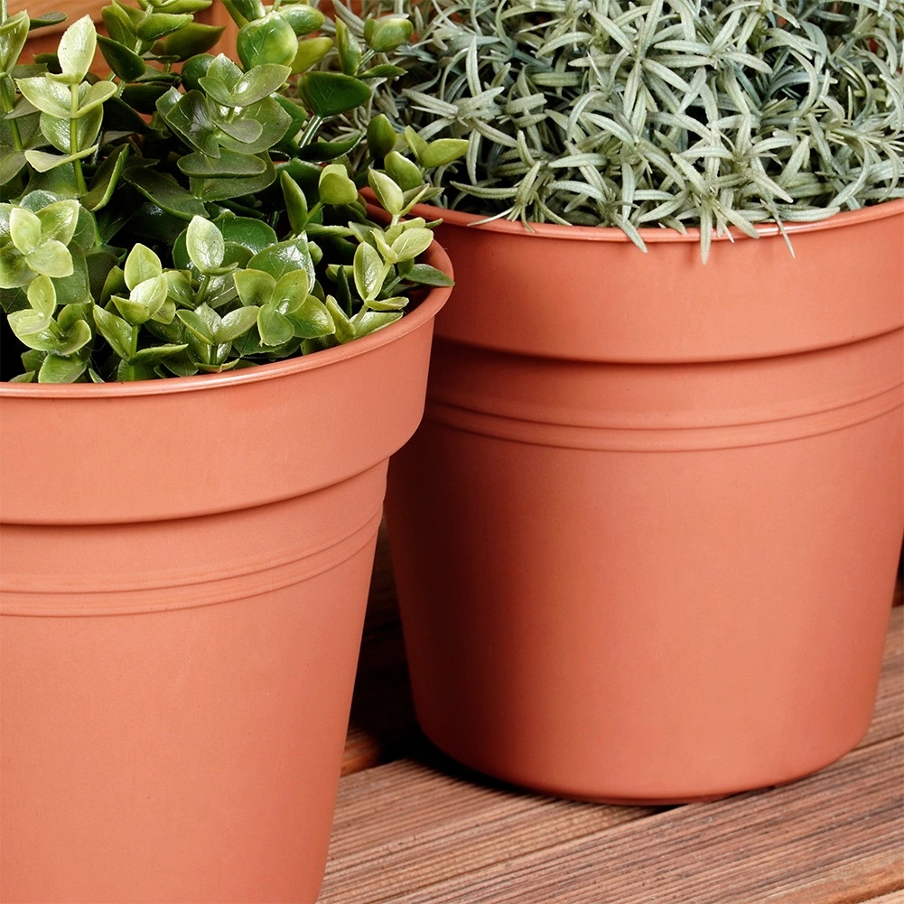 Klasična okrogla oblika in opečnat odtenek se podata sodobnemu in rustikalnemu slogu. Odlični za zelišča na kuhinjski polici, sezonske cvetove na balkonu in zelenje na terasi.