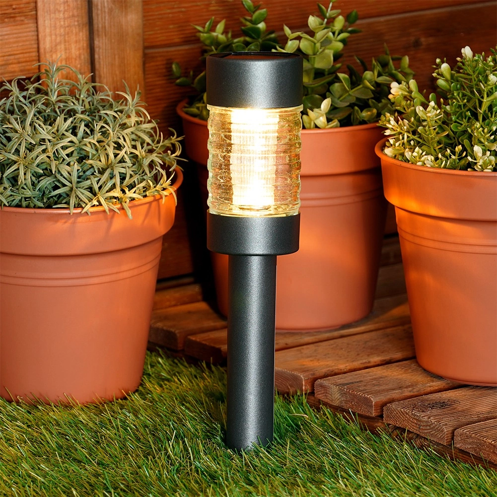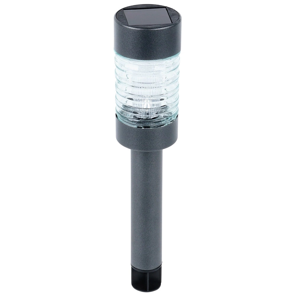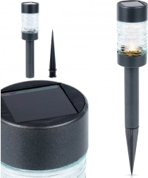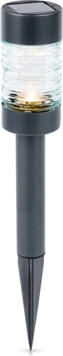 Ohišje svetilke je izdelano iz nerjavečega jekla v temno sivi barvi, zatič pa iz trpežne črne plastike. Namestitev je trenutna – preprosto zapičite v zemljo, brez kablov in orodja. Svetilka se napaja s soncem ter je energijsko varčna in prijazna do narave.