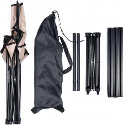 Močan kovinski okvir v črni barvi in kakovostna poliestrska tkanina v bež izvedbi zagotavljata stabilnost, trajnost in udobje.