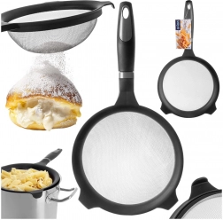 Vsestransko kuhinjsko cedilo olajša vsakodnevno kuhanje in peko. Zahvaljujoč gosti, drobno tkani nerjavni mrežici natančno precedite čaj ali juho, presejete moko ali posipate deserte s sladkorjem. Lahka konstrukcija z ergonomskim ročajem zagotavlja udoben oprijem in dober nadzor pri delu.