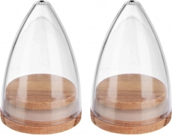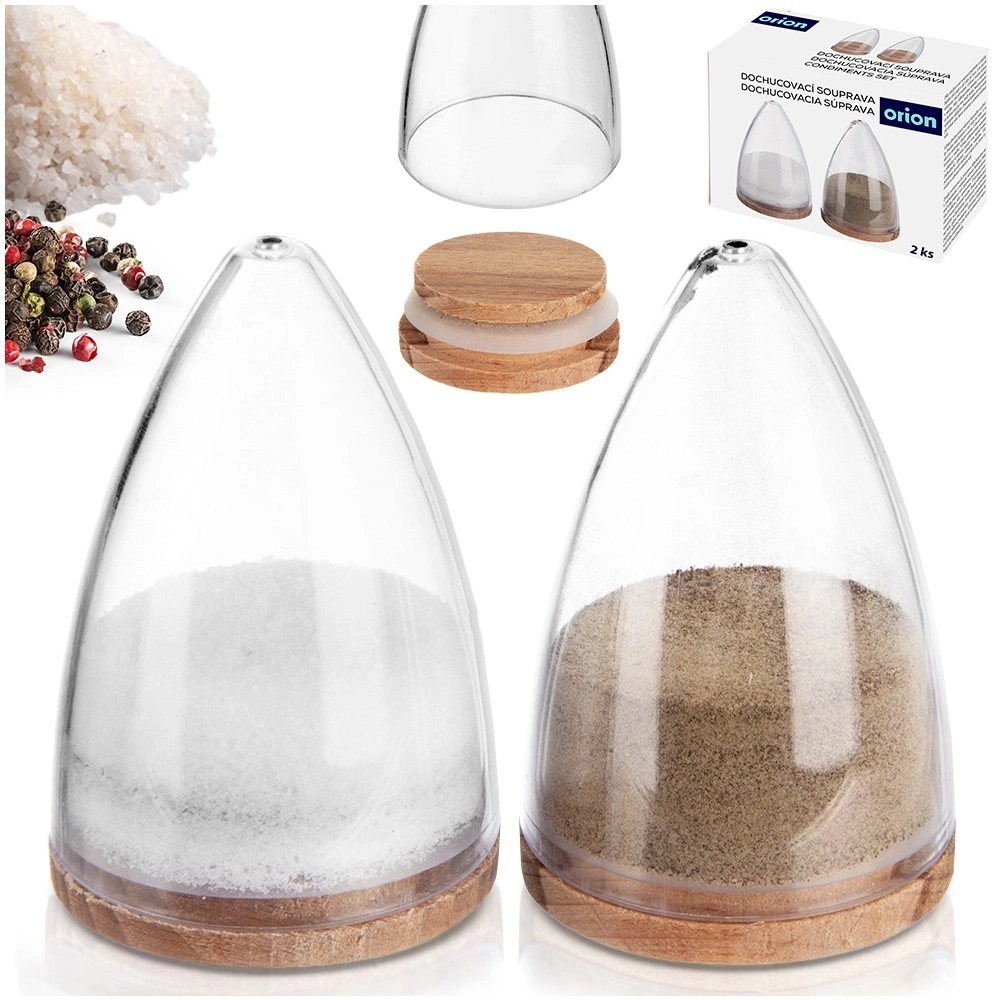 Set vsebuje dve posodici, namenjeni soli in popru. Prozorno ohišje omogoča takojšen pregled nad količino, medtem ko bukov pokrovček s silikonskim tesnilom zadrži aromo v notranjosti in ščiti vsebino pred vlago. Zahvaljujoč majhni dozirni odprtini na vrhu nasujete natančno toliko, kot potrebujete – brez odvečnega posipavanja.