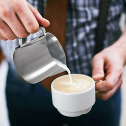 Oblikovan izlív in čvrst ročaj zagotavljata gladek tok tekočine in čist rob skodelice – idealno za serviranje mleka in nežnih omak.