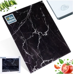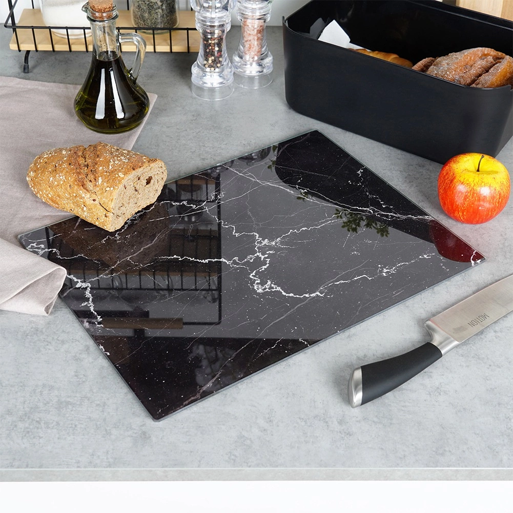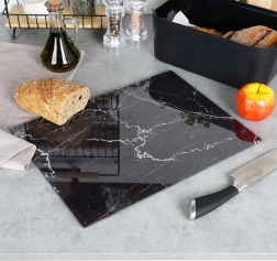 Deska je izdelana iz kakovostnega kaljenega stekla, ki je higiensko, neporozno in enostavno za čiščenje. Črn marmorni dekor doda vaši kuhinji stil.