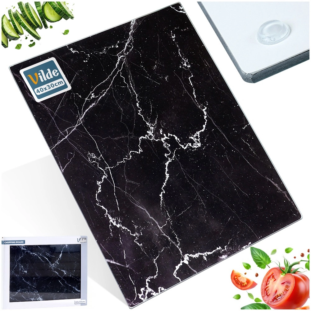 Zaradi univerzalne uporabe služi ne le za rezanje, temveč tudi kot podloga za vroče posode ali okrasni pladenj za serviranje sirov, sladic ali sušija. Moderen črn marmorni dizajn vaši kuhinji doda premium videz.