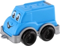Set vsebuje tri barvne avtomobilčke - gasilski avto, osebni avto in kombi, vsi s prijaznim obrazom in varni za otroke.