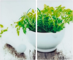 - Kaljeno steklo z dekorativnim potiskom zelišč