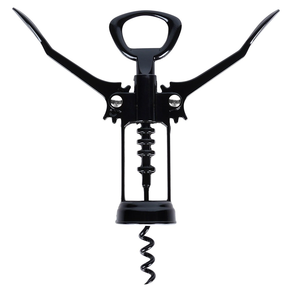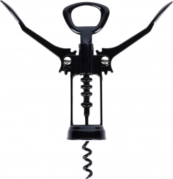 Ta vsestranski krilni odpirač za vino združuje preprosto odpiranje vina in praktičen odpirač za pivo in limonade. Spiralni trn se gladko privije v zamašek, ročice pa varno izvlečejo plutovinast zamašek brez tveganja lomljenja. Črna kovinska izvedba deluje moderno in elegantno – odlično tudi kot darilo za ljubitelje vina.