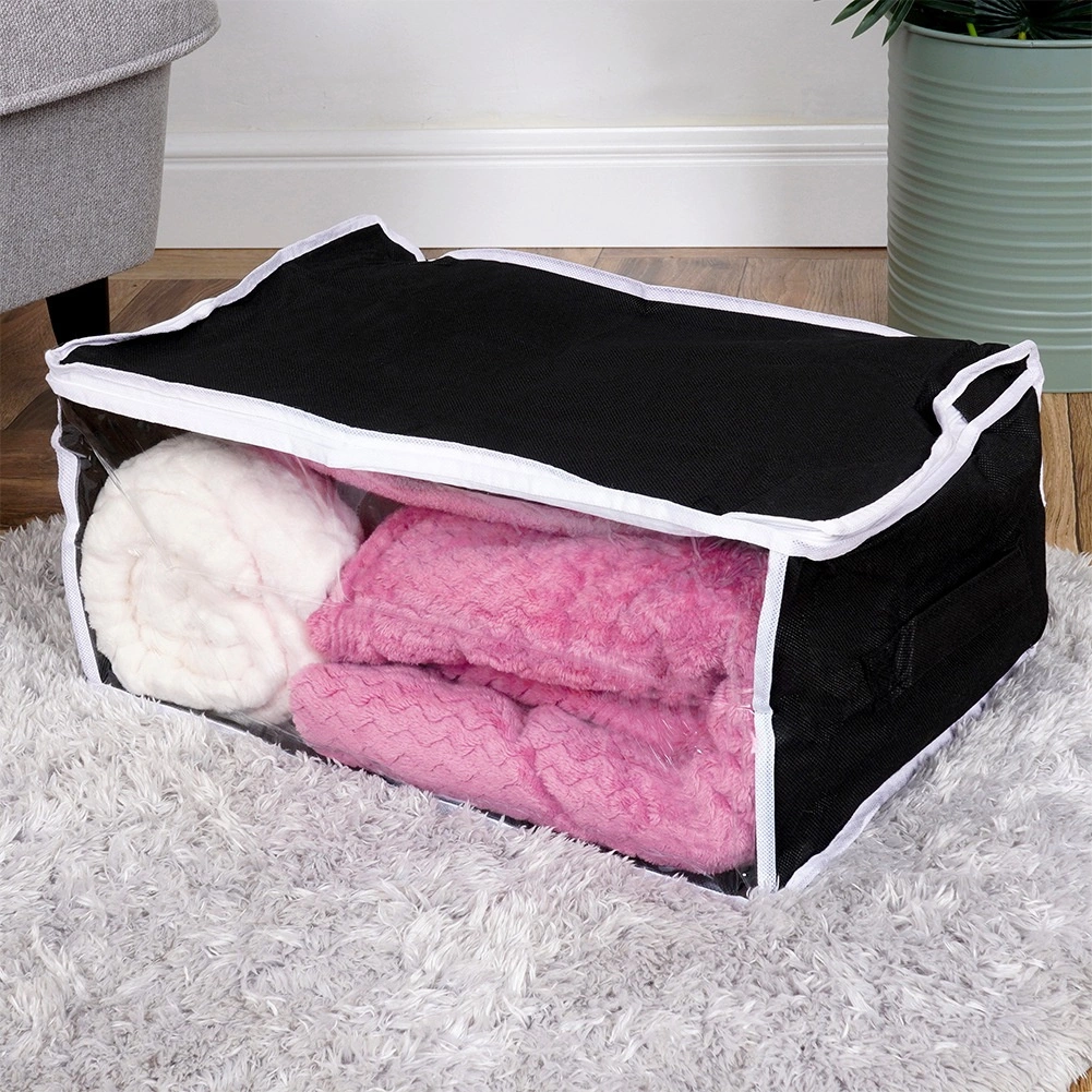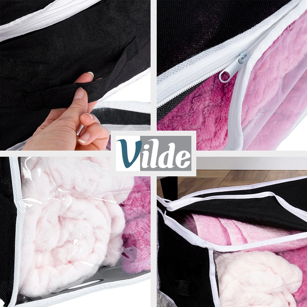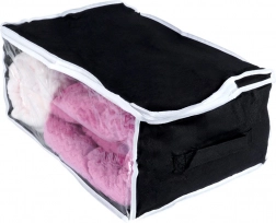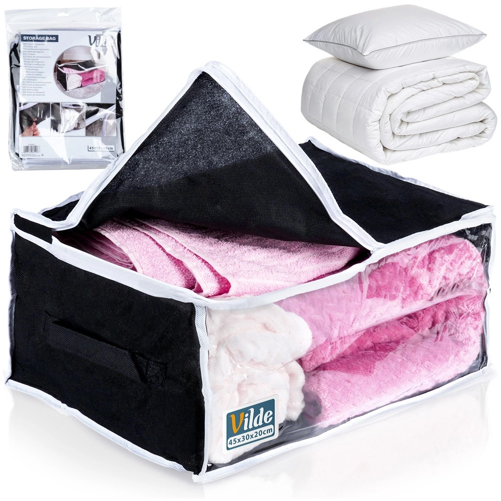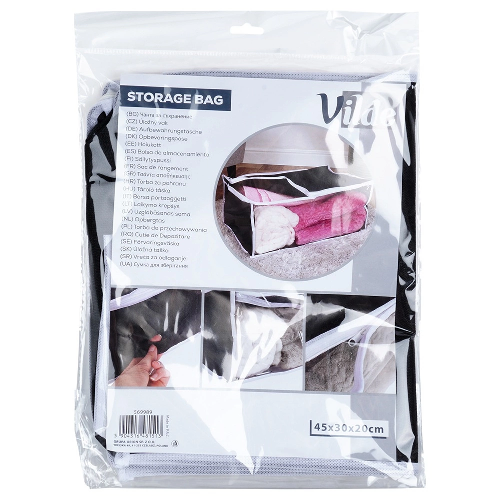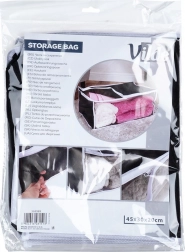Ta vzdržljiva shranjevalna vreča s prostornino 27 l in merami 45 × 30 × 20 cm je izdelana iz trpežne poliestrske tkanine. Zanesljivo zaščiti vašo posteljnino in druge tekstilije pred zunanjimi vplivi ter pomaga ohranjati dom urejen in čist.