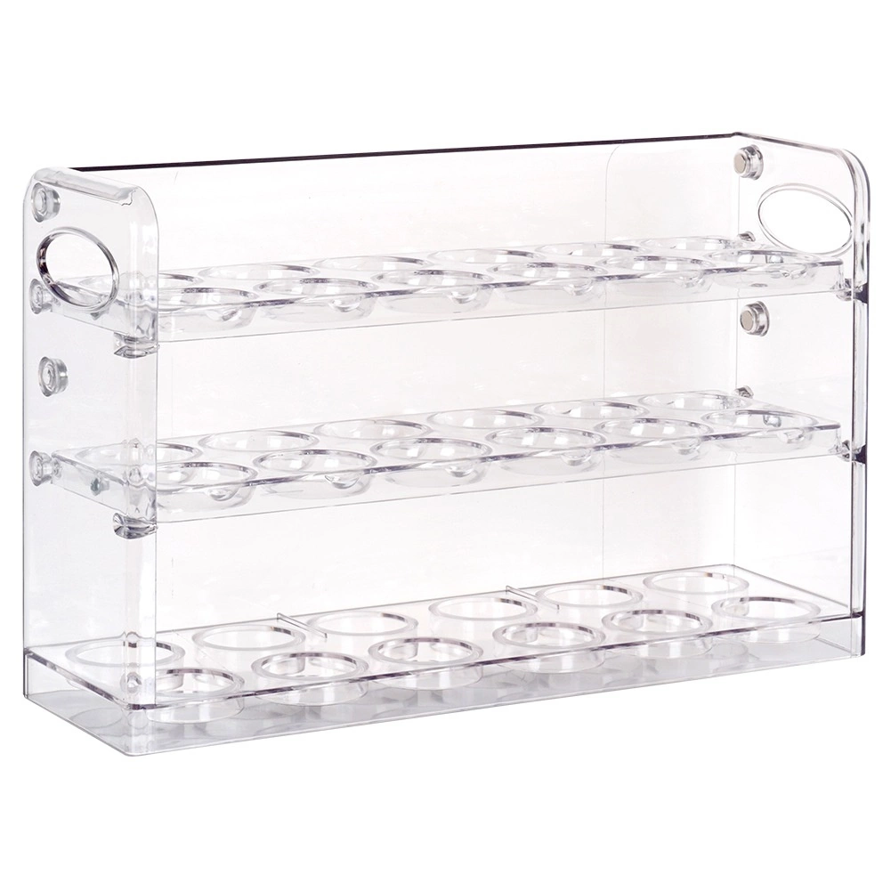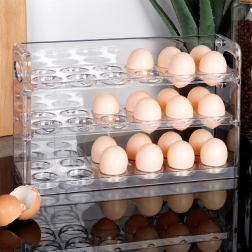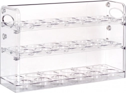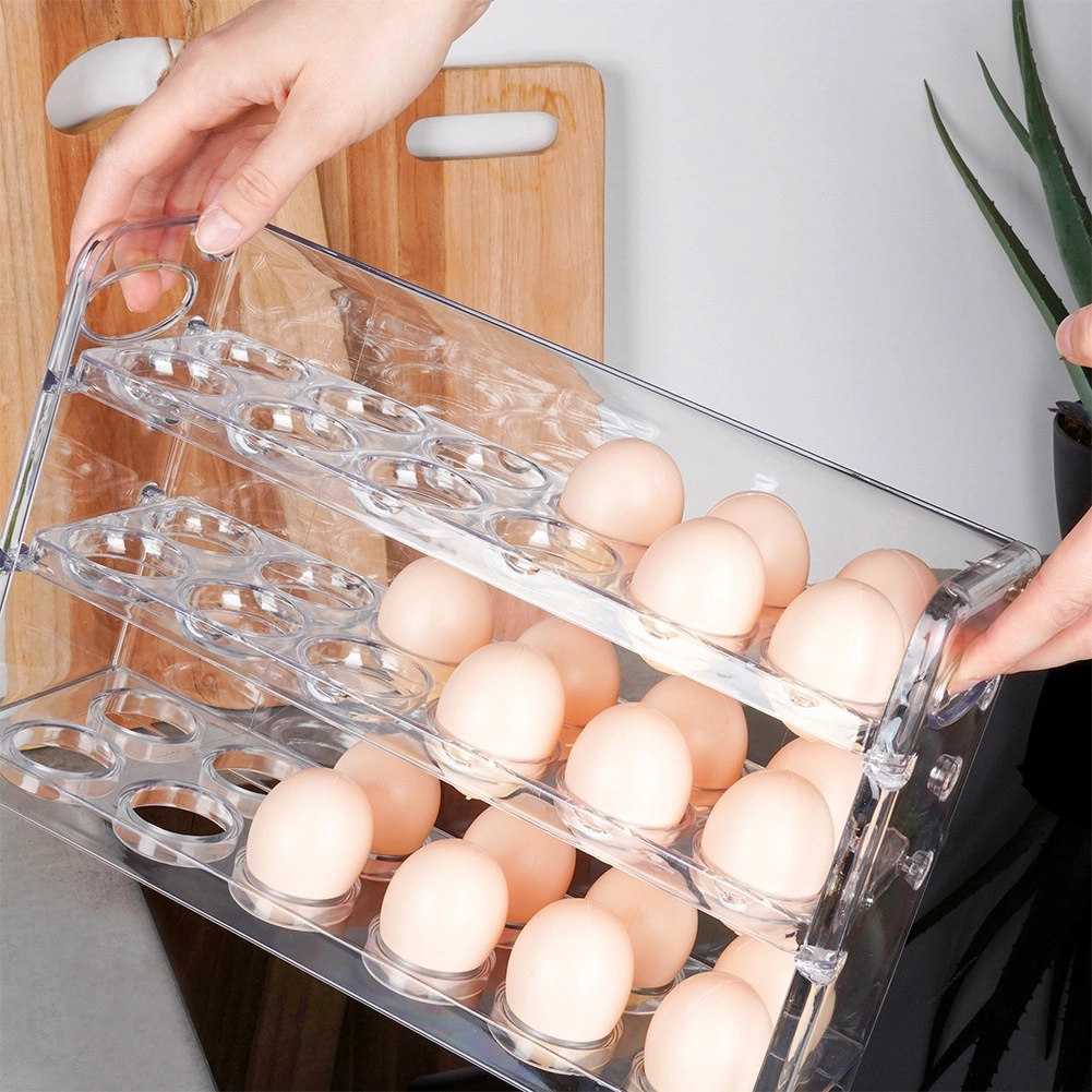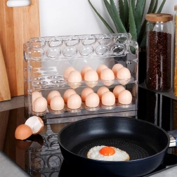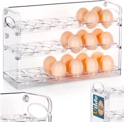 Premišljena troplastna rešitev sprejme veliko zalogo jajc in hkrati varčuje s prostorom v hladilniku. Vsaka plast varno drži 12 kosov.