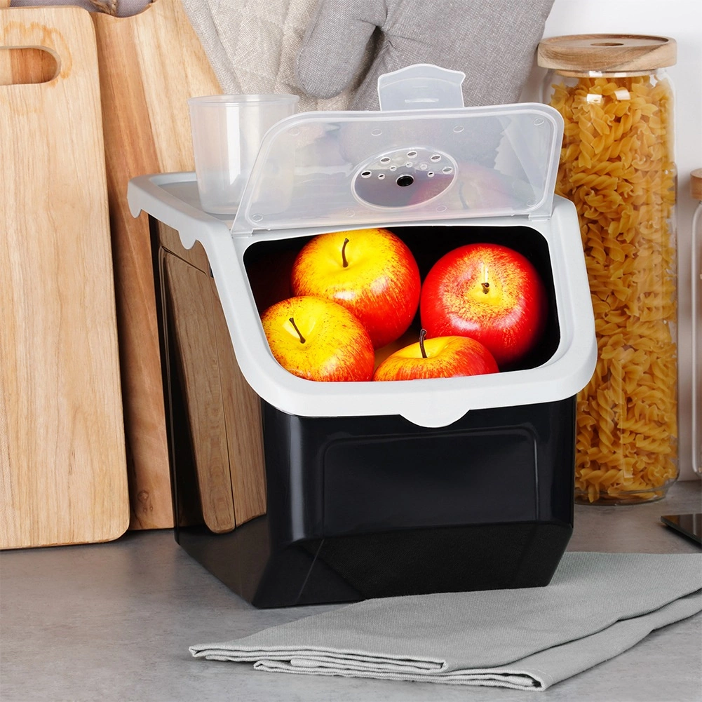 Ohranite red v kuhinji in svežino živil s prostorno škatlo s prostornino 12 l. Zahvaljujoč preklopnemu prozornemu pokrovu zlahka preverite vsebino in preprosto nasipate ali odvzamete potrebno količino. Nastavljive zračne odprtine pomagajo ohranjati pravilno kroženje zraka, da sadje in zelenjava dlje časa ostaneta sveža.