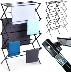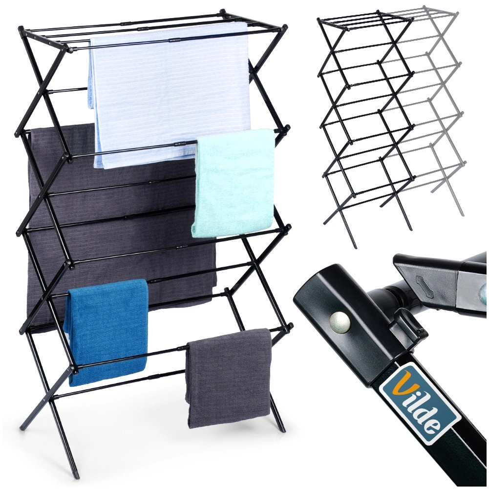 Praktično vertikalno stojalo za sušenje perila VILDE je idealna izbira za manjša stanovanja in družinske hiše. S teleskopsko širino 43–75 cm preprosto prilagodite velikost prostoru in količini perila. Robustna kovinska konstrukcija s črnim prašnim lakom zagotavlja dolgo življenjsko dobo in sodoben videz.