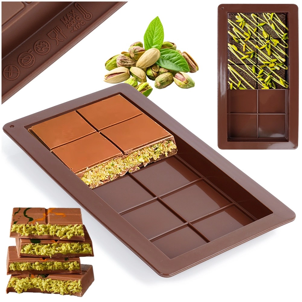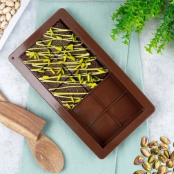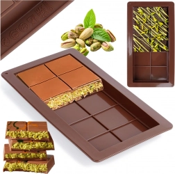 Ta kakovosten silikonski model vam omogoča pripravo popolno oblikovanih čokoladnih tablic – od klasične mlečne do različic z oreški, suhim sadjem ali začimbami. Fleksibilen in neprijemljiv silikon zagotovi čiste oblike in brezskrbno odstranjevanje brez potrebe po namastitvi.