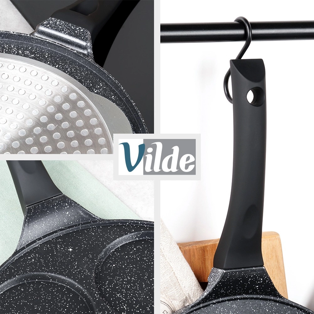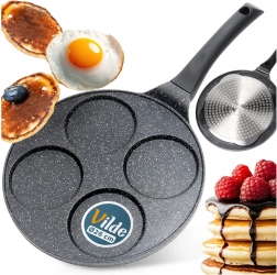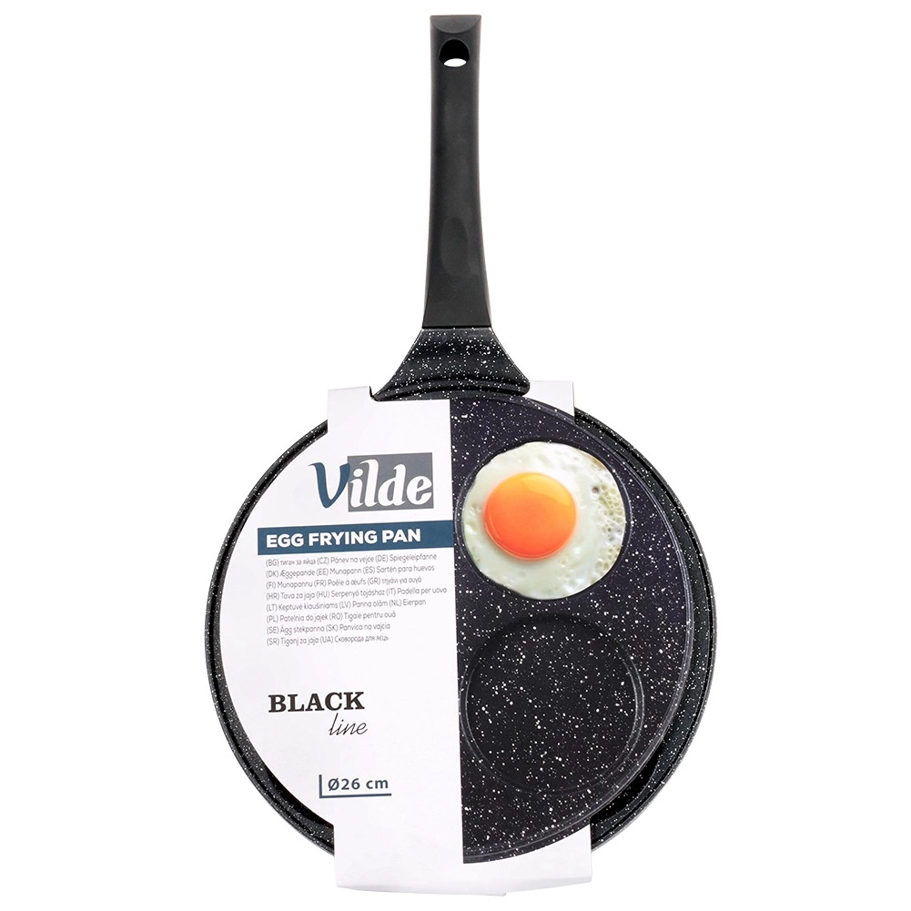 Ta elegantna ponev iz linije BLACK LINE s premerom 26 cm ima štiri plitve okrogle forme, idealne za jajca, palačinke in mini palačinke. Granitna neprijemljiva površinska obdelava omogoča bolj zdravo kuhanje z manj olja ter olajša serviranje in čiščenje.