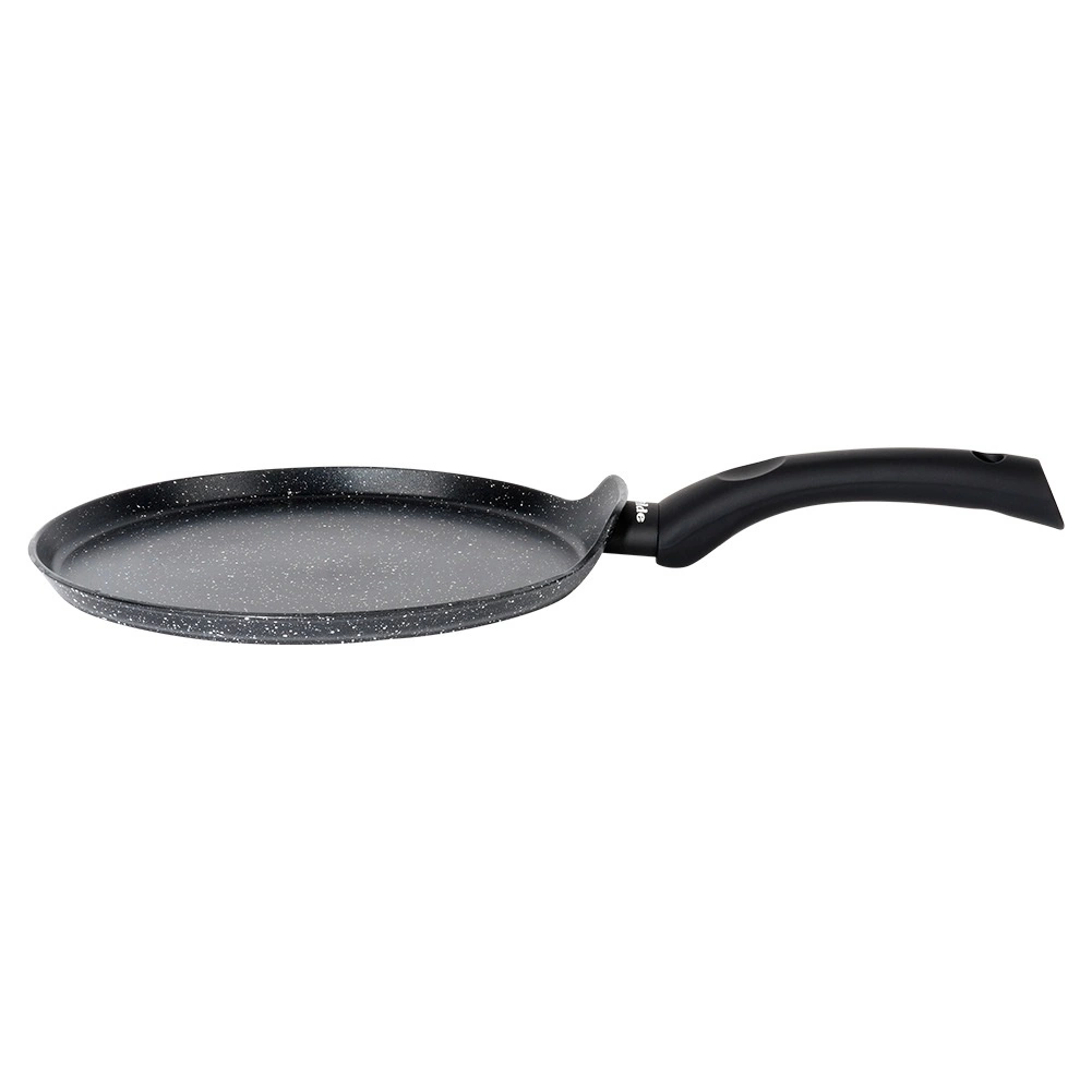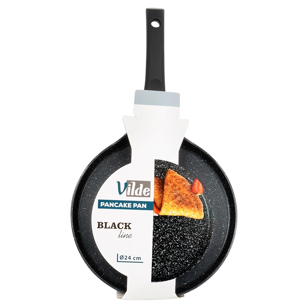 Uživajte v brezskrbnem pečenju s ponevjo za palačinke Black Line 24 cm. Granitni neprijemljivi premaz zagotavlja lahko obračanje in enostavno serviranje, medtem ko nizek rob in široko, ravno dno pripomoreta k enakomernemu zapečenju. Ergonomski ročaj s soft-touch površino je prijeten na dotik in ostane hladen.