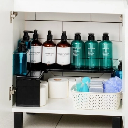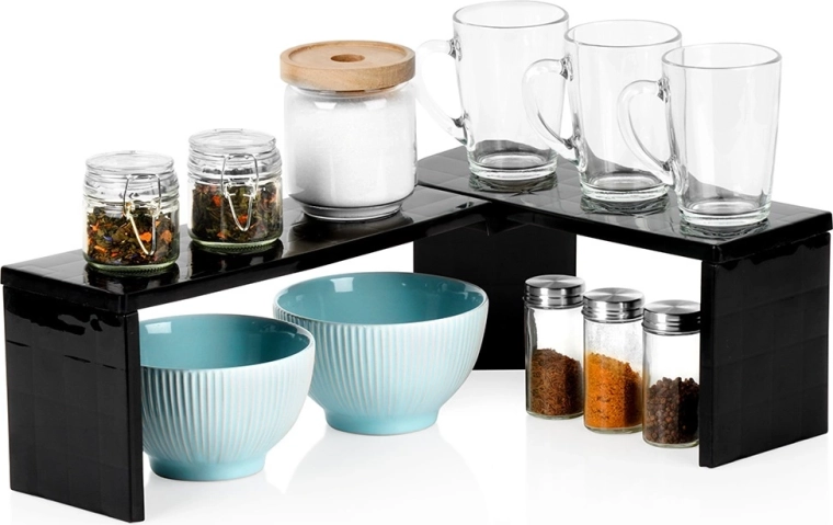 Ta univerzalna kotna polica učinkovito razdeli višino omarice ali prostor na delovni površini na dve ravni. V kotni konfiguraciji prihrani prostor v kotu, v vzdolžni pa maksimalno izkoristi širino. Zahvaljujoč kakovostni izdelavi je odporna in stabilna, zato zanesljivo nosi vsakdanje kuhinjske pripomočke.