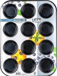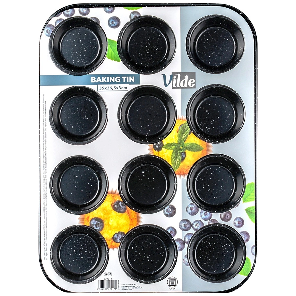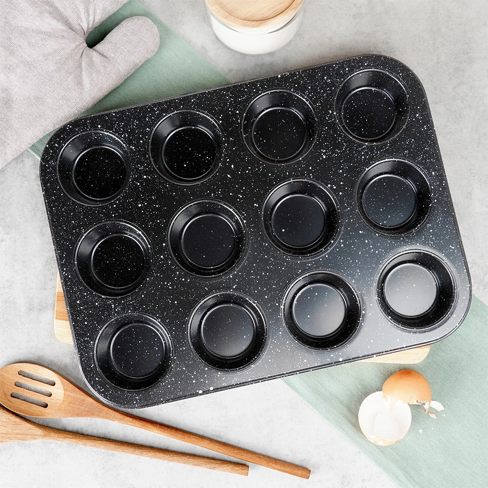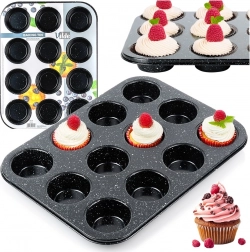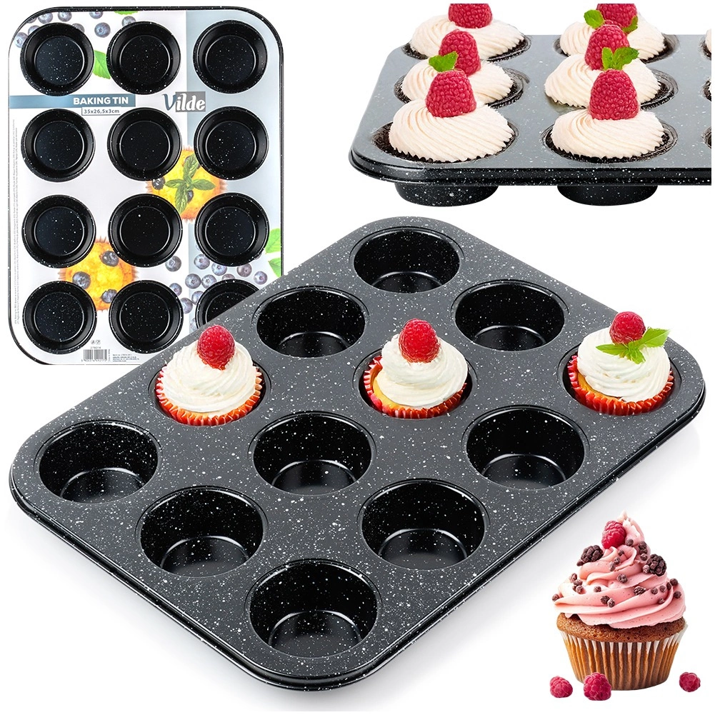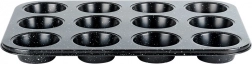 Ogljično jeklo odlično prevaja toploto in peče enakomerno v vseh 12 modelčkih.