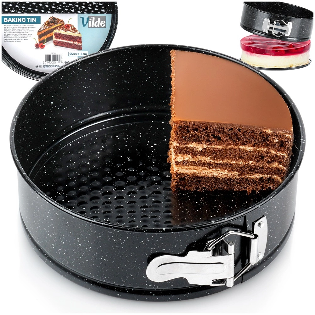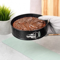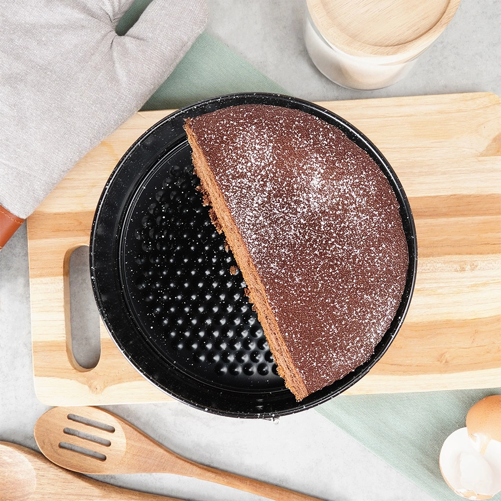 Robustno ogljikovo jeklo prenese temperature do 230 °C in enakomerno razvaja toploto, zato bosta vaša torta ali cheesecake popolno pečena. Material ne absorbira vonjav ali tekočin ter je primeren za plinske in električne pečice.