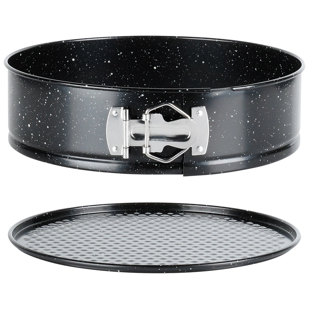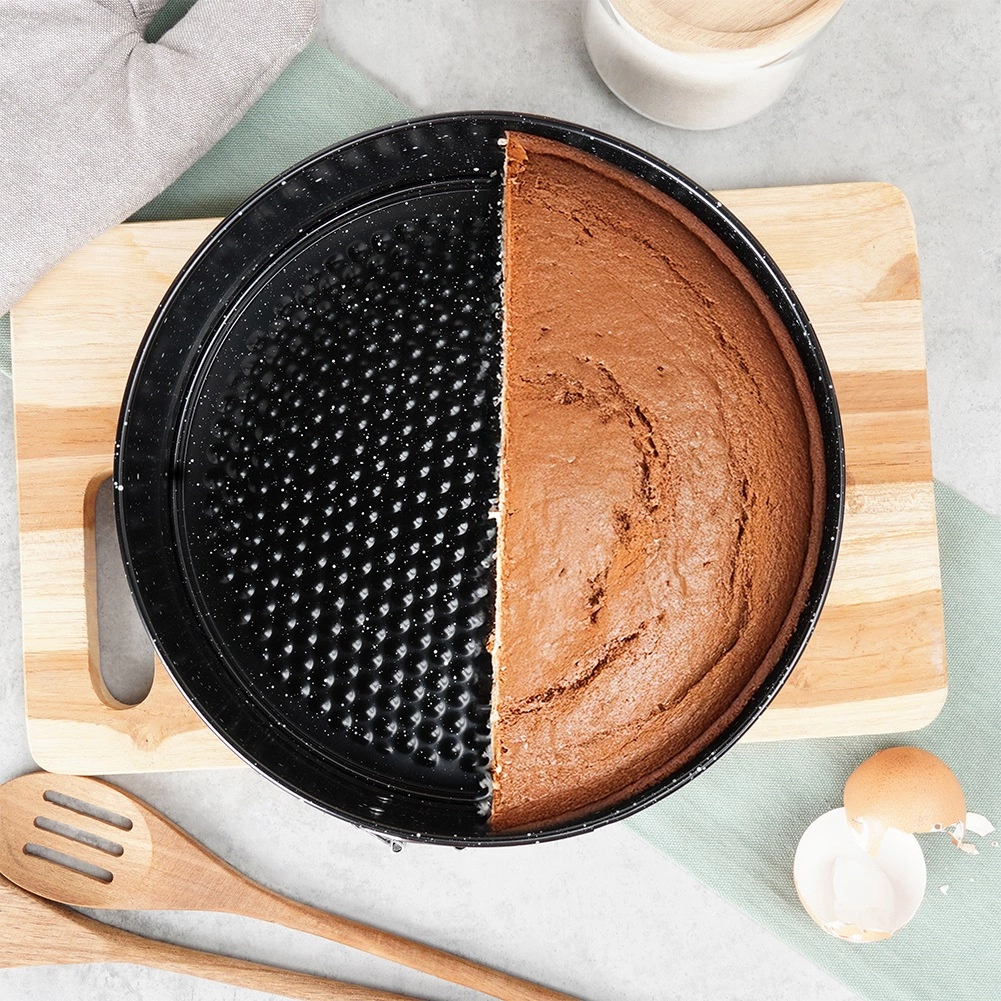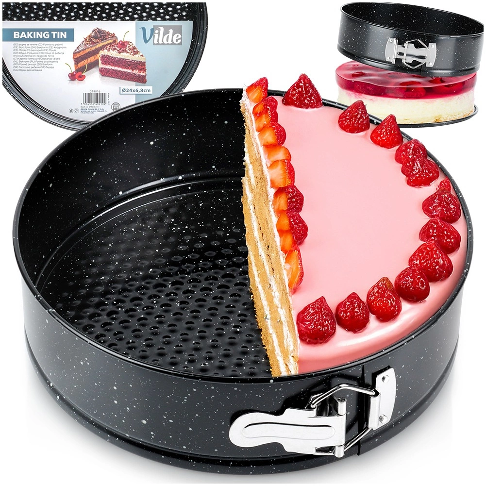 Ta okrogel raztegljiv model za torte 24 cm združuje kakovostno jeklo z granitno neprijemljivo plastjo za udobno peko brez prijemanja tudi z minimalno količino maščobe. Odstranljivo dno in stranska sponka omogočata brezskrbno odstranjevanje pečenega biskvita, zato ohranite popolno obliko tort in sirovih tort.