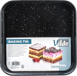 Masivno ogljično jeklo zagotavlja enakomerno porazdelitev toplote, je odporno na visoke temperature (do 230 °C) in ne vpija vonjav ali tekočin. Pekač je primeren za plinske in električne pečice in je zaradi kvadratne oblike odličen za pite, rezine, cheesecake, biskvitne osnove za torte ter slane pečene jedi.
