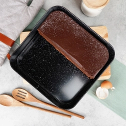 Pikčasta granitna površina zmanjšuje prijemanje in olajša čiščenje. Pecite z manj maščobe in dosezite čiste robove.