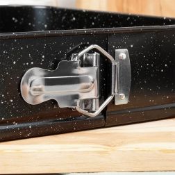 Stranska sponka omogoča hitro odpiranje pekača, zato torto ali pito odstranite brez poškodovanja oblike. Idealno za cheesecake in plastene deserte.