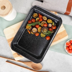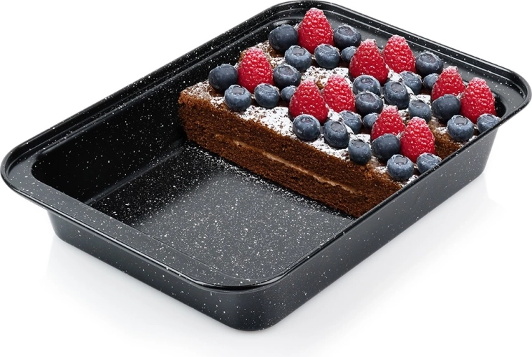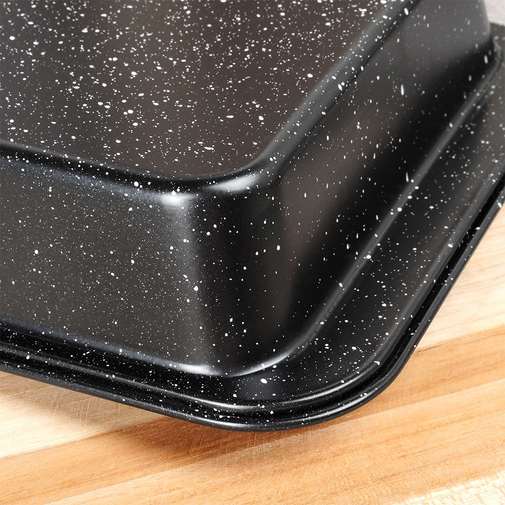 Ta granitni pekač združuje čvrsto ogljikovo jeklo in trpežen granitni premaz za popolne rezultate pri vsaki peki. Nelepljiva površina zmanjšuje potrebo po maščobi, preprečuje prijemanje in zelo olajša čiščenje.