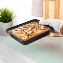 Zahvaljujoč enakomerni porazdelitvi toplote bodo vaše jedi znotraj dobro pečene in na površini lepo zlato zapečene. Visoki robovi preprečujejo iztekanje sokov in povečujejo varnost pri rokovanju. Pekač je idealen za vsakodnevno kuhanje in vikend peko.