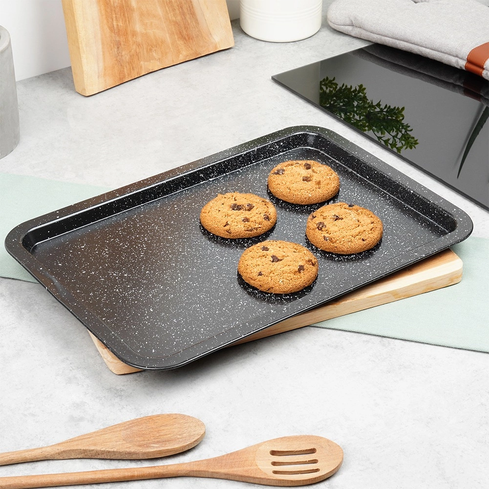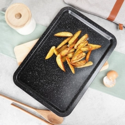 Pravokotni pekač iz kakovostnega ogljikovega jekla z granitno nelepljivo prevleko je odporen na temperature do 230 °C, ne vpija vonjav in ne zadržuje tekočin. Primeren je za plinske in električne pečice, z enakomerno porazdelitvijo toplote pa vedno dosežete odlične rezultate.