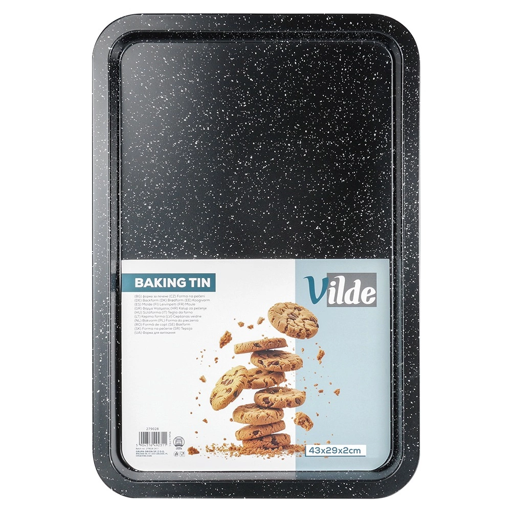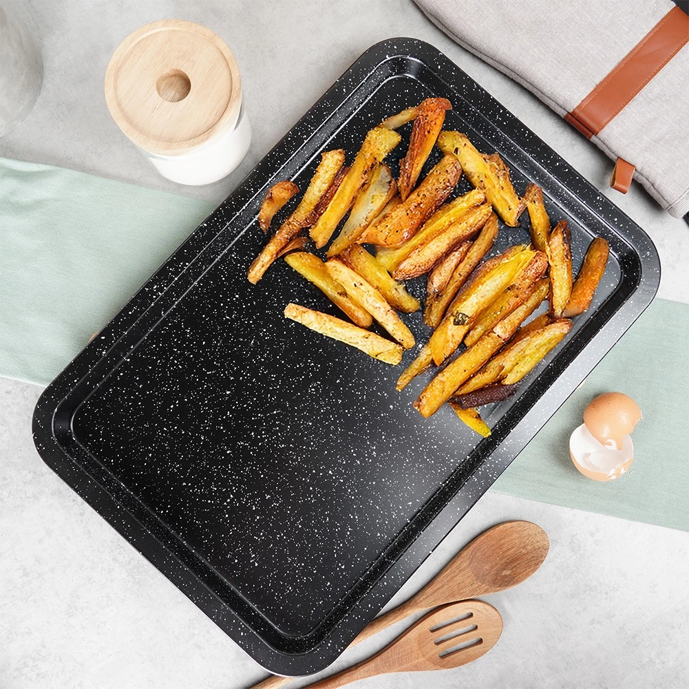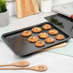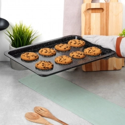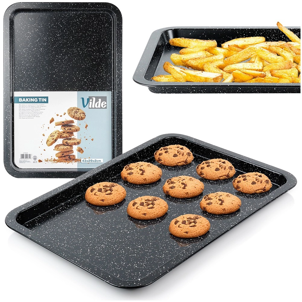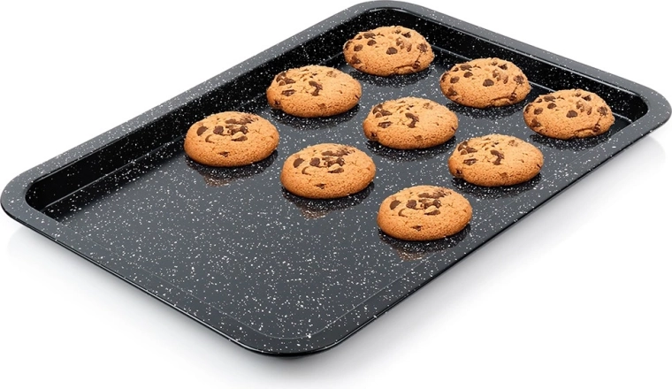 Posebna granitna obdelava preprečuje prijemanje in olajša sproščanje jedi, zato pečene piškote ali pomfrit zlahka odstranite s pekača, čiščenje pa je hitro in enostavno.