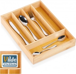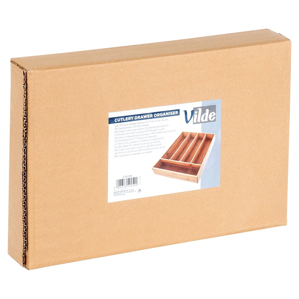 Ta praktičen organizator iz kakovostnega bambusovega lesa bo poskrbel, da bodo vaš jedilni pribor, noži in manjši kuhinjski pripomočki vedno na svojem mestu. 5 premišljeno razdeljenih sekcij olajša vsakodnevno kuhanje in zagotavlja hiter dostop do pogosto uporabljenih predmetov.