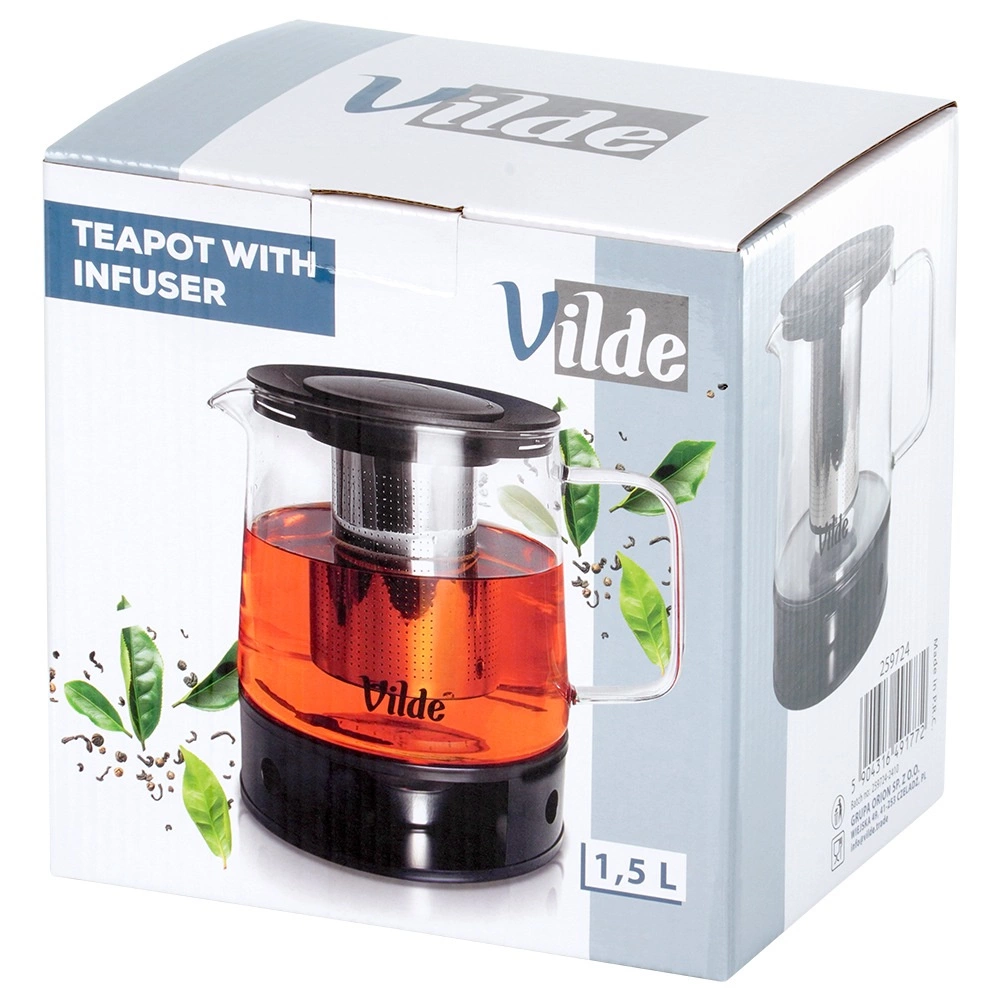 Stekleni čajnik z nerjavnim sitkom in grelnikom 1,5 l Vilde