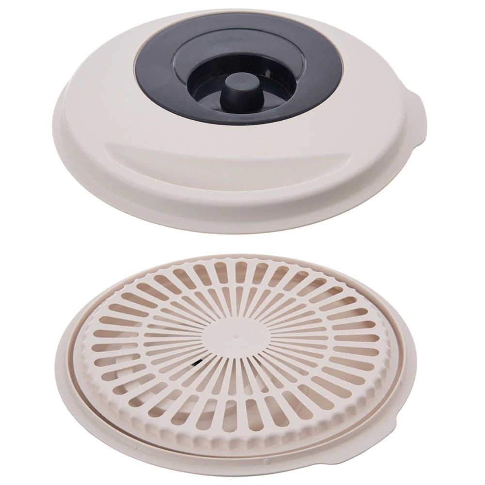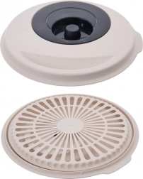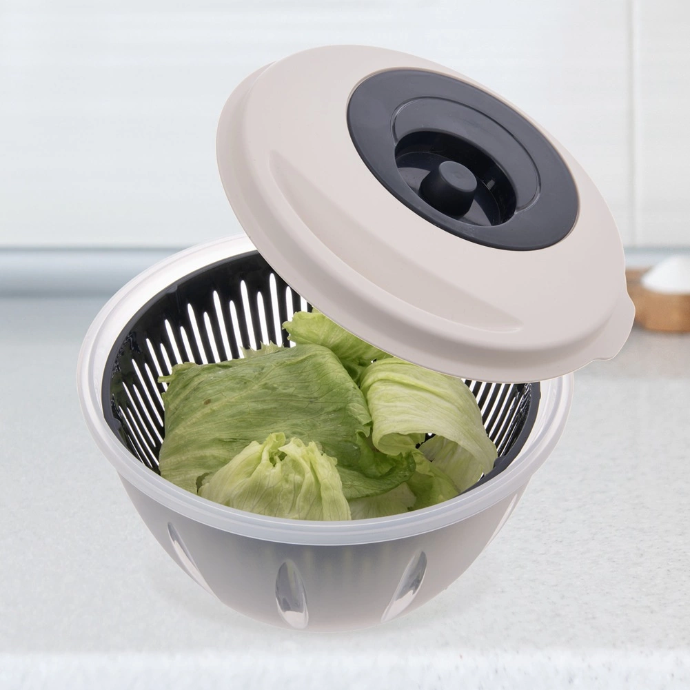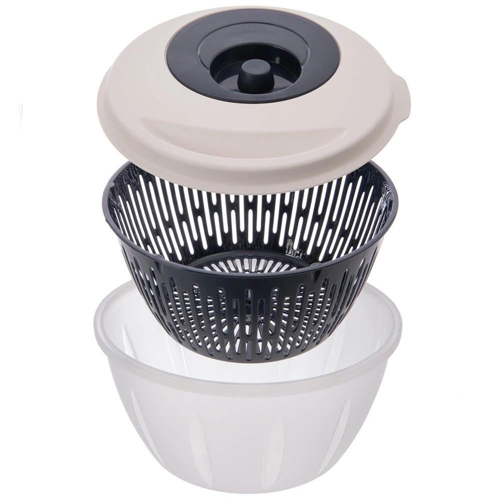 Vsestransko uporabo boste cenili tudi zunaj sveta solat – odstranljiv koš deluje kot cedilo, posoda kot servirna skleda. Vse dele je mogoče zlahka razstaviti in pomiti, posoda je primerna tudi za pomivalni stroj in mikrovalovno pečico, odporna do +95 °C. Kakovostna izvedba v kombinaciji prozorne posode, sivega koša in belega pokrova se odlično poda v vsako kuhinjo.