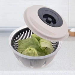 Centrifuga ELA je idealen pomočnik za vsakodnevno pripravo svežih solat. V trenutku odstrani odvečno vodo in pusti liste lepo suhe in hrustljave. Zahvaljujoč prozorni posodi imate sušenje pod nadzorom, ročni mehanizem z udobnim upravljanjem v pokrovu pa zagotovi gladko vrtenje koša.