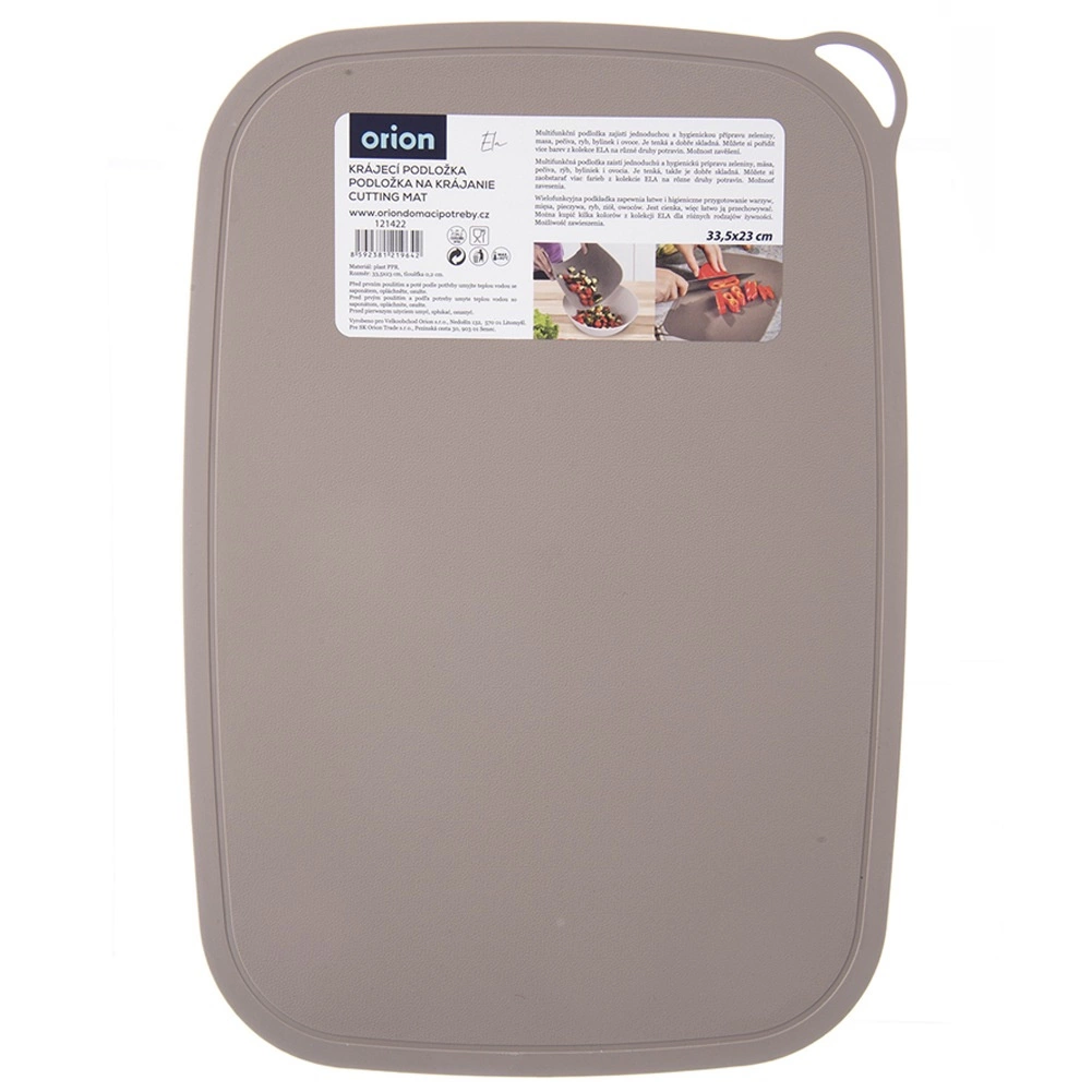 Elastična rezalna podloga ELA z merami 33,5 × 23 × 0,1 cm je lahka, tanka in izjemno praktična za vsakodnevno rezanje mesa, zelenjave in sadja. Upogljiv material omogoča, da podlogo preprosto prepognete in natančno usmerite sestavine v posodo, zato kuhinja ostane čista.