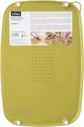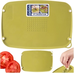 Praktična in higienska deska za rezanje za vsakodnevno uporabo. Ponuja dvostransko izvedbo, protizdrsne izbokline, osrednje zatiče za fiksiranje živil in preprosto odvajanje sokov v eno smer. Je primerna za pomivalni stroj, odporna do +95 °C in ima odprtino za obešanje. Preverjena kakovost znamke ORION.