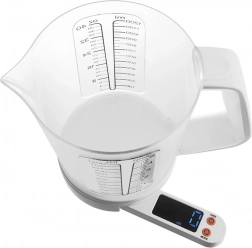 Merilni vrč iz kakovostne prozorne plastike ima jasno berljivo skalo od 100 do 1200 ml z delitvijo po 100 ml in dodatno preračun v skodelice (od 1/4 do 5 cup). Elegantna bela izvedba se prilega vsaki kuhinji, zaradi kompaktnih mer pa tehtnico zlahka shranite. Preverjena kakovost znamke ORION, izdelano v skladu z evropskimi standardi.