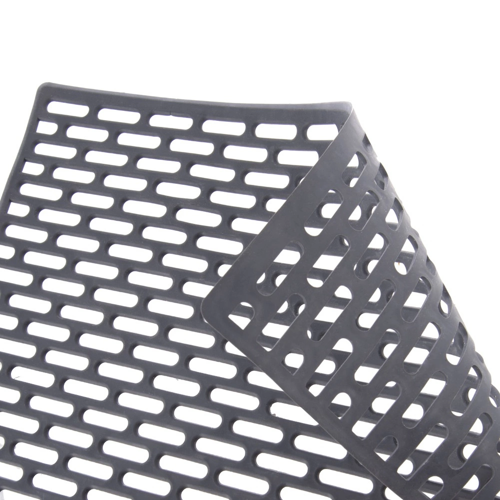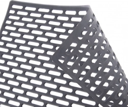 Premišljena perforirana struktura omogoča prost pretok vode in preprečuje njeno nabiranje. Podloga je enostavna za čiščenje, prilagodljiva in odlično prilega površini. Njene kompaktne mere 33 × 28 cm in nevtralen videz se podajo tako modernim kot klasičnim kuhinjam.