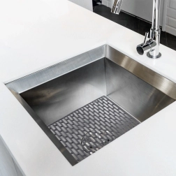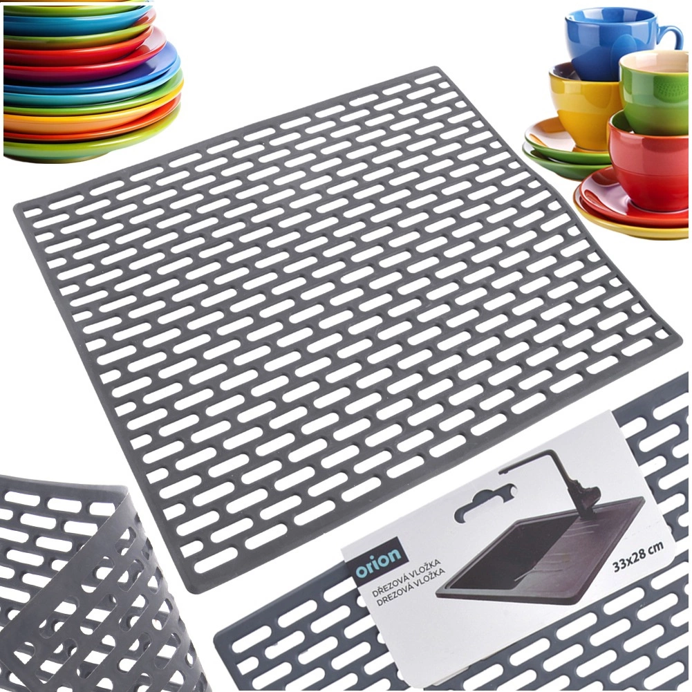 Zaščitite svoje korito in posodo z vzdržljivo podlogo iz termoplastičnega materiala. Zmanjša neposreden stik posode s površino korita in s tem preprečuje praske, odrgnine in mehanske poškodbe. Protizdrsna površina povečuje varnost in stabilnost pri pomivanju.