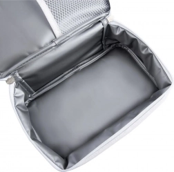 Praktične podrobnosti, kot so dvojni zadrg za hiter dostop, udoben ročaj za enostavno prenašanje in notranji mrežasti žep z dvema predeloma, zagotavljajo red in udobje pri vsakodnevni uporabi doma, v službi in na poti.